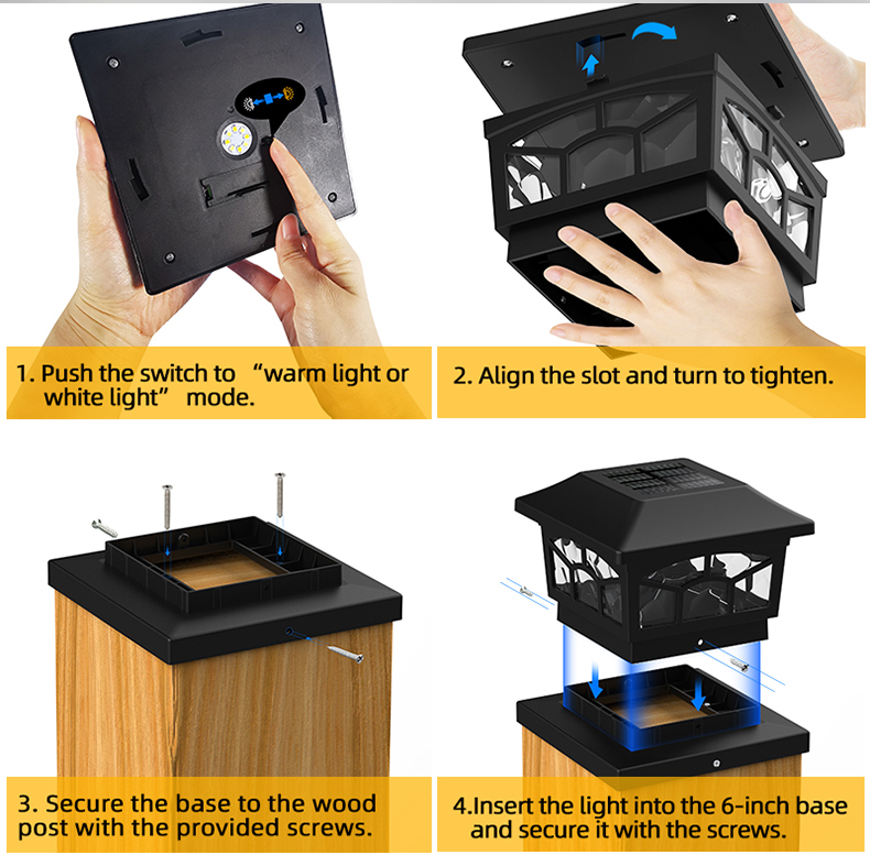 4. 간단한 설치, 실외 태양광 벽 조명은 제공된 나사를 사용하여 몇 초 만에 벽에 장착할 수 있으며 케이블이나 와이어가 필요하지 않습니다.